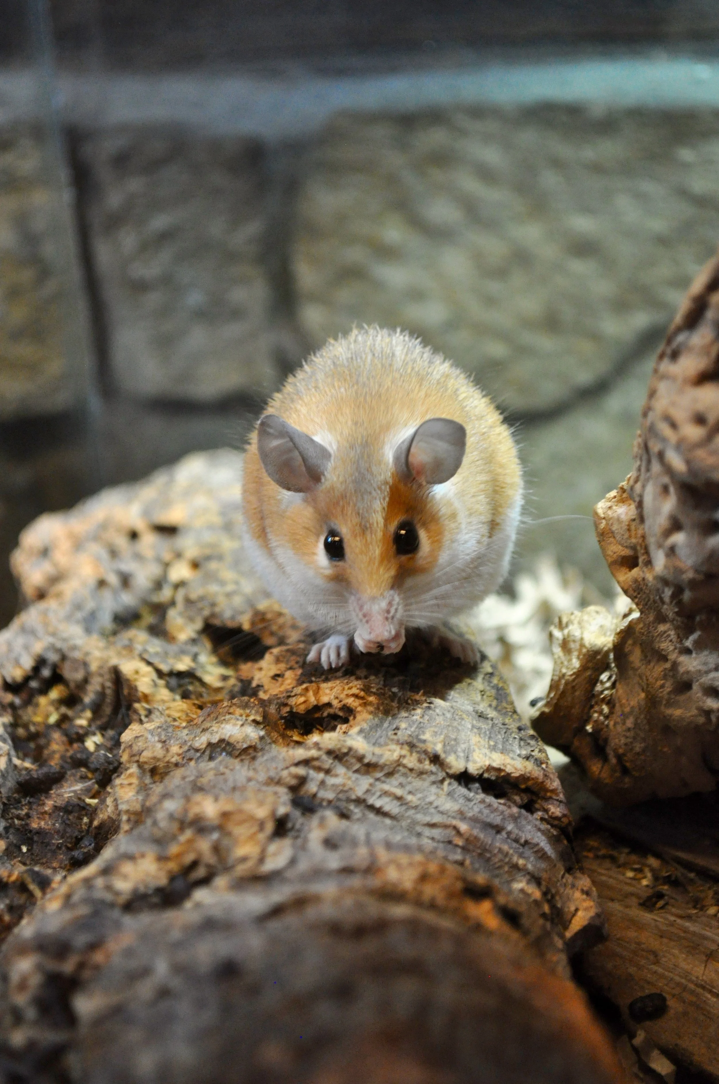 The Research Center on Gorilla Falls Exploration Trail in Africa is home to Cairo spiny mice. Since Cairo spiny mice are near the bottom of the food chain, they often seek shelter in rock crevices or cracked soil. They are very curious, active animals, especially when provided with novel items in their habitat. Providing a variety of places to hide while making exhibit props changes is one of the keys to helping the mice feel comfortable in their space. Hiding spots are designed using propped up flat pieces of cork bark, cardboard tubes, hollow logs, and browse. These offer the mice cozy places to sleep, nest, and travel to other sides of their exhibit. Different materials, such as pieces of wood or rocks provide a selection of textures to explore. On really hot days, rocks that have been chilling in the refrigerator are offered as an option. Sometimes, the mice will lay on top of the cool rocks or gravitate to the area nearby for the cooler temperatures. Mice also have a keen sense of smell. Fresh bedding or the addition of an item rotated from a different area provide novel odors which often encourages exploration.